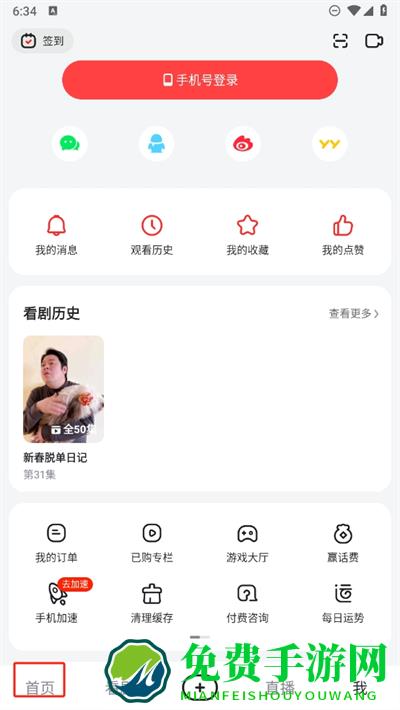 2、进入我的界面内,点击上方手机号登录的按钮。