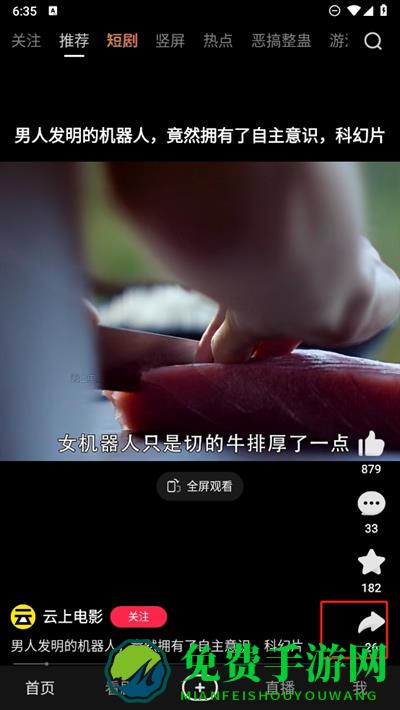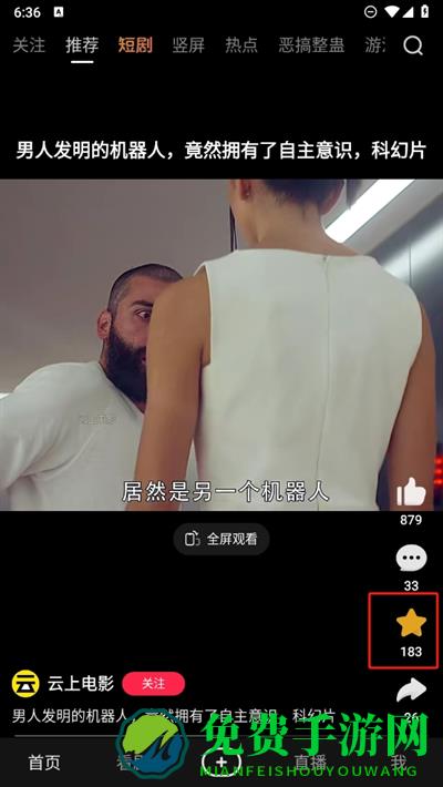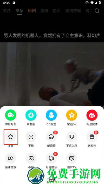2、接着在推荐的短视频中如果有想要收藏的视频,直接单击星星或者在这里进入更多功能页面;