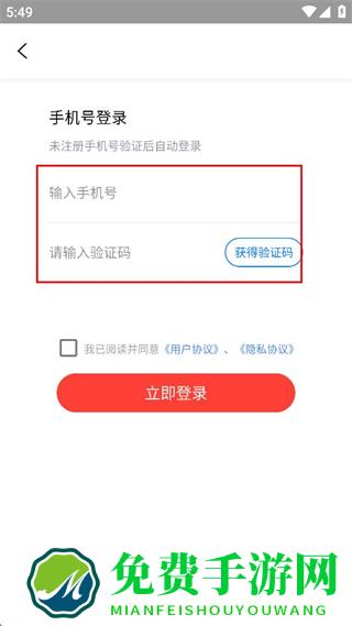 3、在手机号登录界面,依次填写手机号栏位内容,点击获得验证码并填写对应内容。
