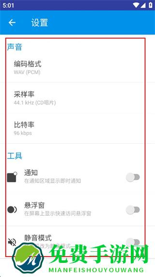 无损质量高清录音:五种录音格式、七种采样率任意选择