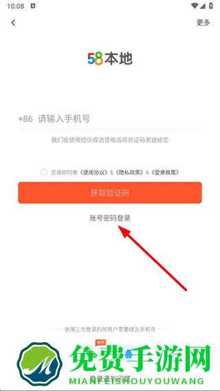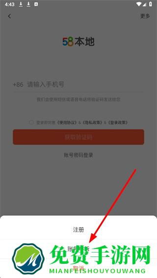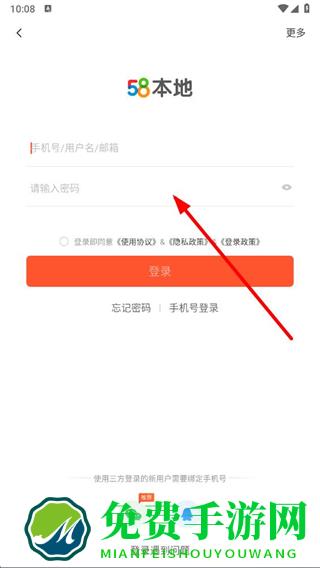 1、在58本地登录界面,点击右上角的更多选项,唤起操作菜单。