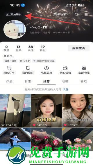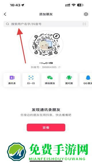 2、在添加朋友页面的搜索框中,输入要添加的用户名/抖音号,然后点击搜索。