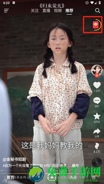 1、进入软件后在视频的上方出现红包,每一次收看红包都转增加金币进入这里;