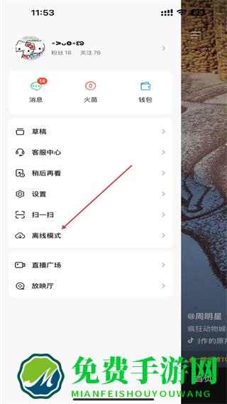 2、在左侧弹出的菜单栏中,点击离线模式的按钮。