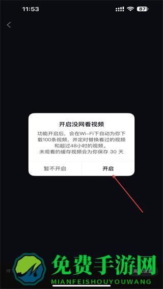 3、当页面弹出提示后,点击开启的按钮即可开始离线。