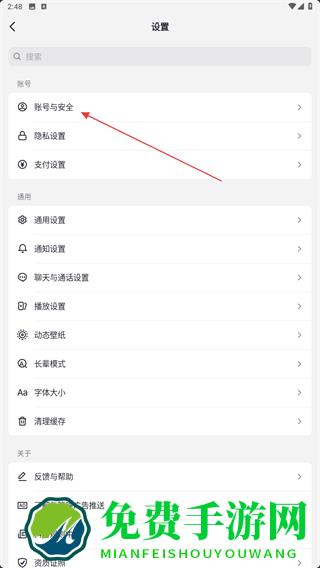 4、进入设置的界面内,点击上方账号与安全的按钮。