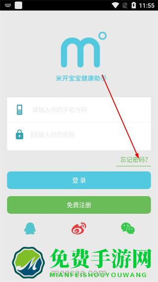 1、在米开宝宝app登录页,点击忘记密码选项。