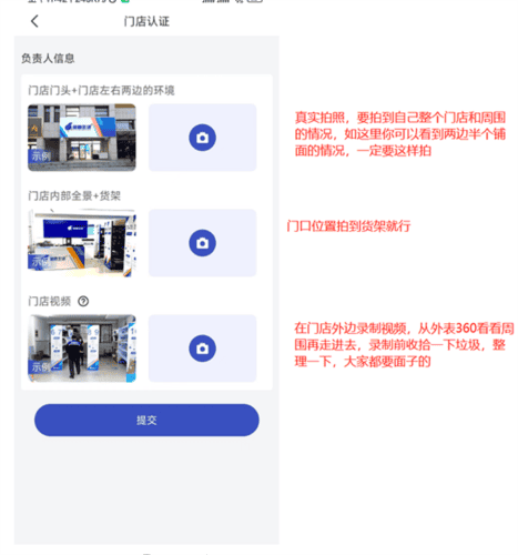 7、进入【门店认证】界面,根据要求上传相应的视频后,选择【提交】选项,