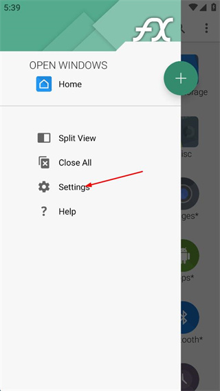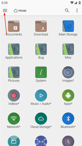 2、进入FXFileExplorer首页,找到页面左上角的菜单按钮,点击该按钮展开菜单。