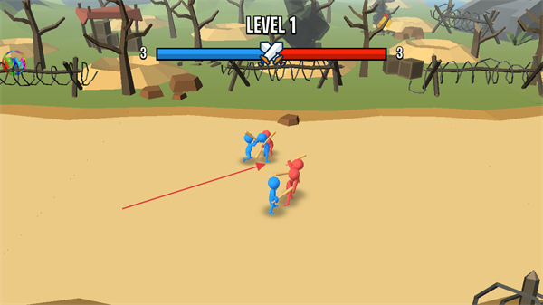 1、在LEVEL1中操控蓝色部队与红色部队交战,利用数量优势攻击敌方,双方初始兵力均为3。