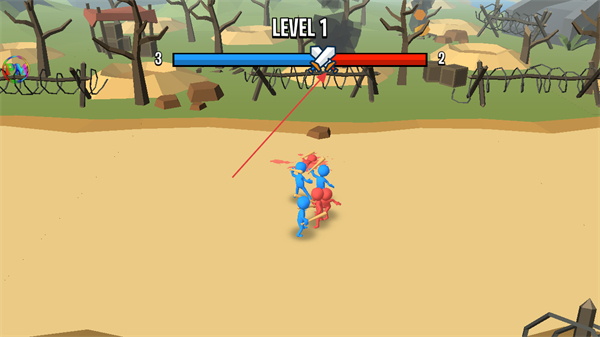 2、指挥蓝色部队持续攻击,敌方兵力减为2,进度条向蓝色方推进。