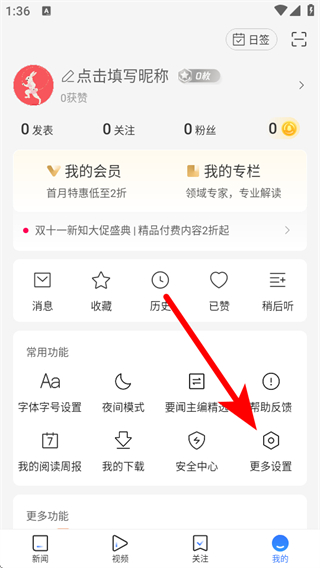 2、在个人页面的常用功能的板块中,点击更多设置。