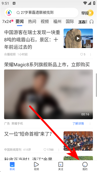 1、打开腾讯新闻APP,点击底部我的,进入个人的页面。