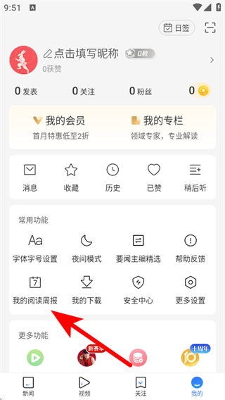 2、在个人的页面,点击我的阅读周报,进入阅读周报的页面。