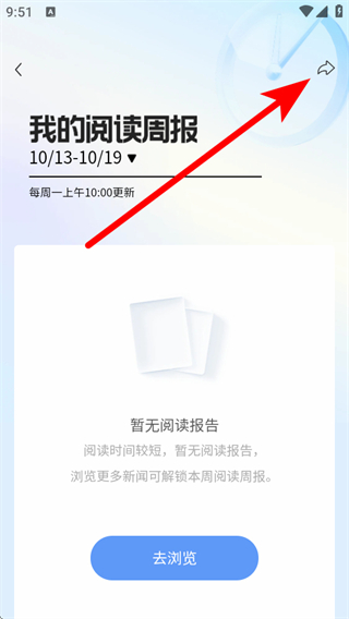 3、在阅读周报页面,点击右上角分享图标,弹出分享的选项。