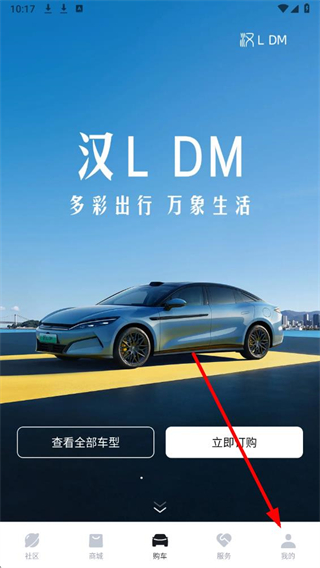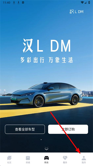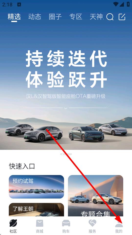 1、在比亚迪首页界面,点击底部我的选项,进入我的页面。