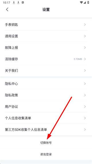 3、在设置页面,点击切换账号选项,进入账号切换的操作界面。