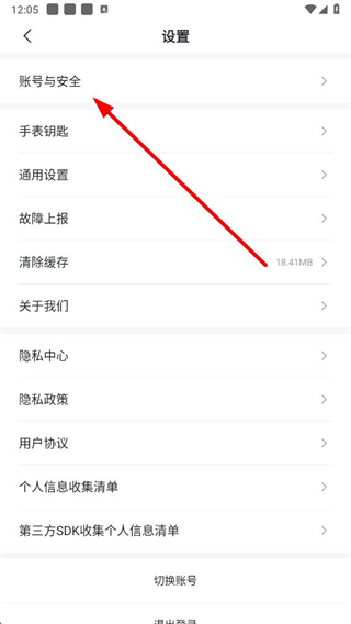 2、在设置界面,点击账号与安全选项,进入账号与安全页面。