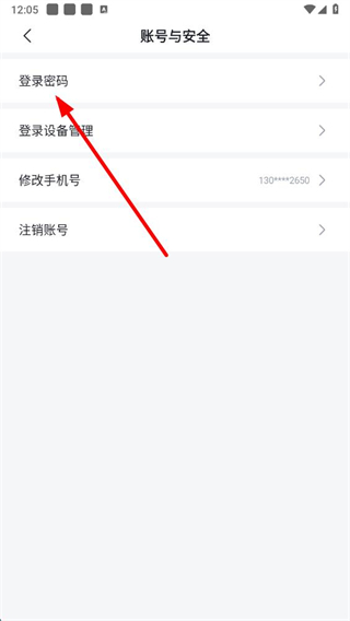 3、在账号与安全页面,点击登录密码选项,进入登录密码页面。