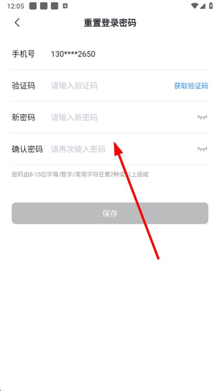 5、输入验证码、新密码和确认密码后,点击保存即可完成登录密码重置。