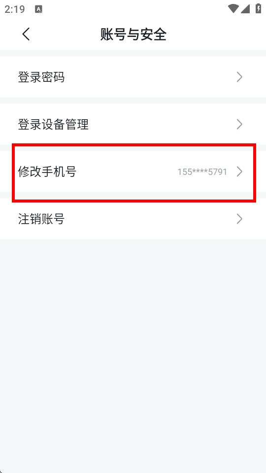 4、在账号与安全界面,点击修改手机号,按照后续提示完成手机号修改操作。