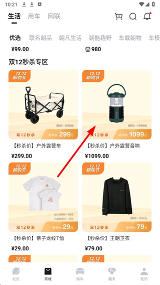 1、在比亚迪的商城页面,在商品页面选择要购买的商品,点击进入商品详情页。
