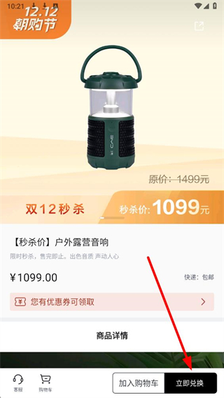 2、在商品详情页面,点击右下角的立即兑换按钮。