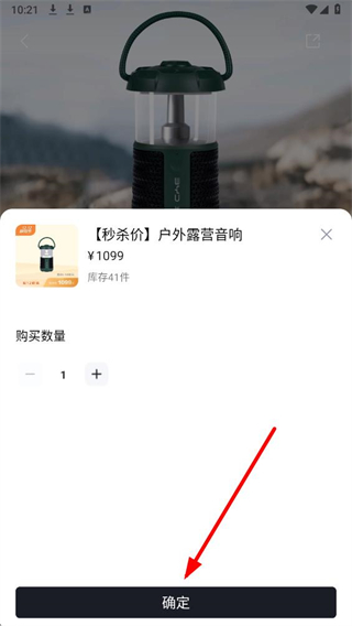 3、在商品购买弹窗中,确认购买数量,点击确定按钮,进入订单确认页面。