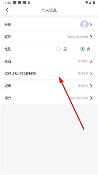 4、在个人信息页面,可修改头像、昵称、驾驶证初次领取日期简介等信息,完成修改即可。