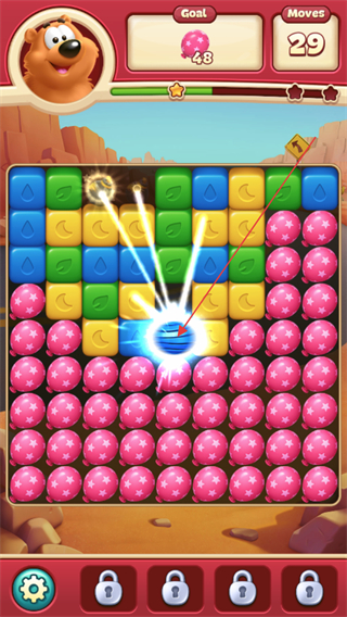 3、玩法融合经典点击消除与趣味开箱子设定,通关指定关卡或收集足量星星即可解锁宝箱,随机道具带来充满惊喜的游玩过程。