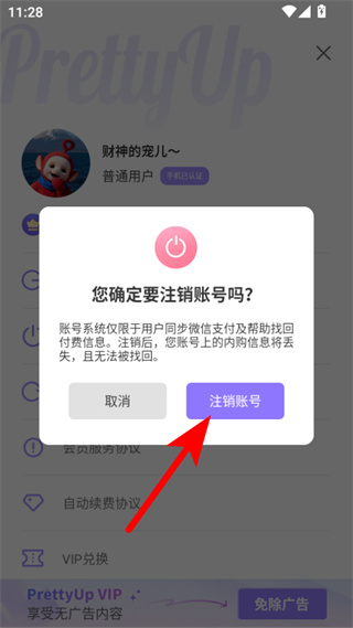 3、在注销确认窗口中,点击注销账号按钮,即可完成账号注销。