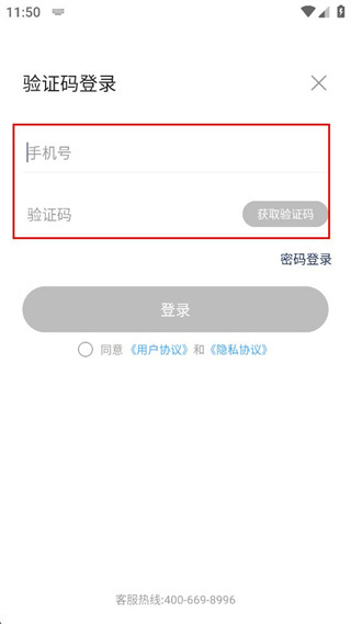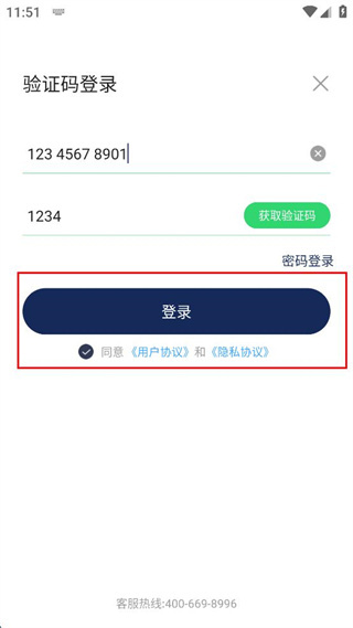 4、填写收到的验证码,勾选相关协议选项,点击登录按钮,完成软件登录操作。