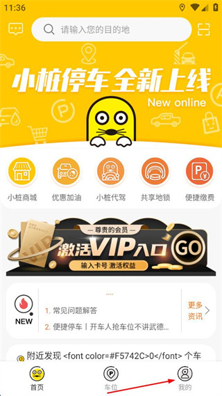 1、打开小桩停车软件,等待启动页加载完成,进入显示地图的主界面。