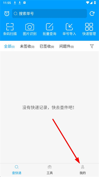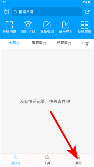 1、打开快递查询宝典app,在查快递页面,找到底部我的选项并点击。