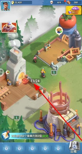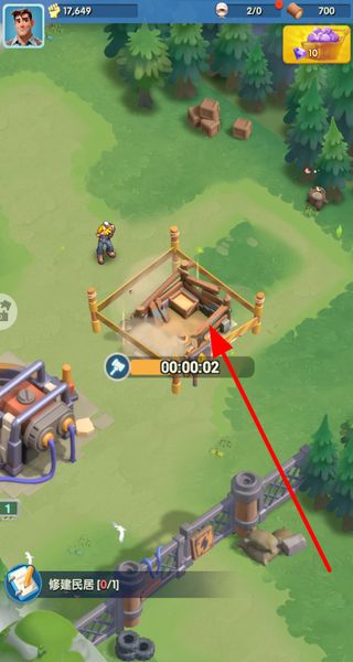 2、消耗木材资源,进行民居的修建操作,等待修建进度完成,解锁新的建筑设施。
