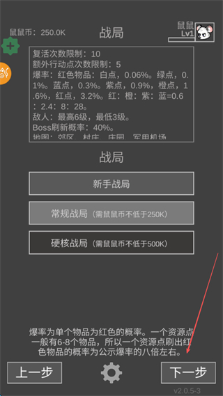 1、选择新手战局开启游戏满足银鼠币条件,进入战局准备阶段。