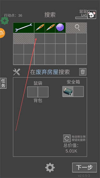 3、查看搜索到的物品如工具类道具,将其存入安全箱或背包,积累物资。