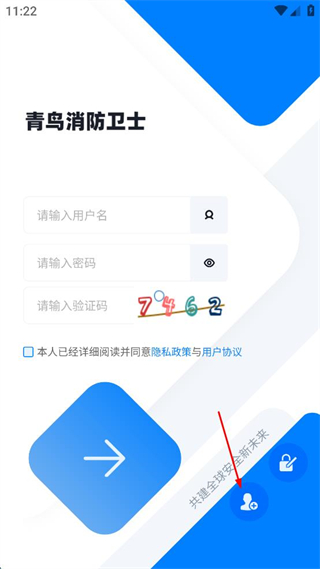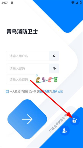 1、打开青鸟消防卫士,点击右下角的忘记密码图标。