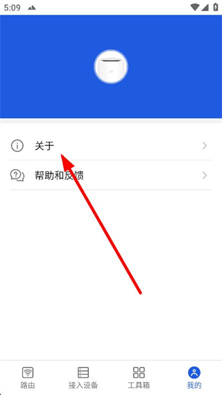 2、进入我的页面后,找到并点击下方的关于选项。