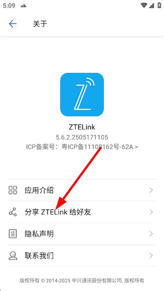 3、点击分享ZTELink给好友,即可分享给他人。