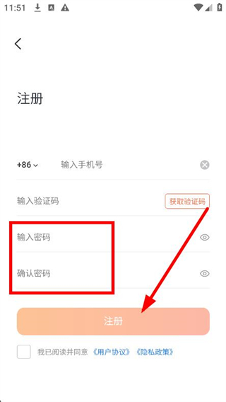 3、设置并确认密码,点击注册按钮,即可完成账号注册。