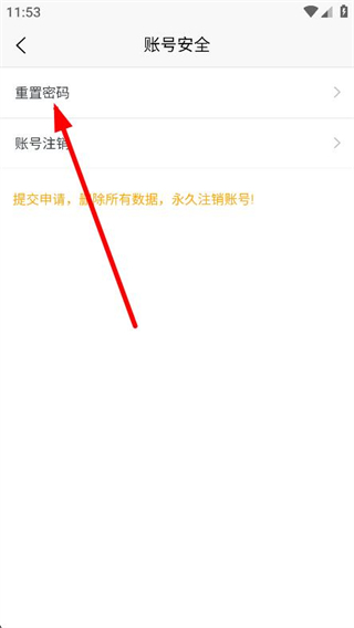 3、在账号安全页面,点击上方的重置密码选项。