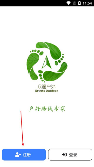 1、打开众途户外APP,在启动界面找到注册按钮,点击该按钮进入注册信息填写页面。
