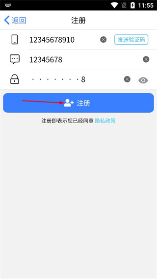 3、将验证码填入对应框内,设置符合要求的密码,点击注册按钮完成账号注册操作。