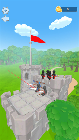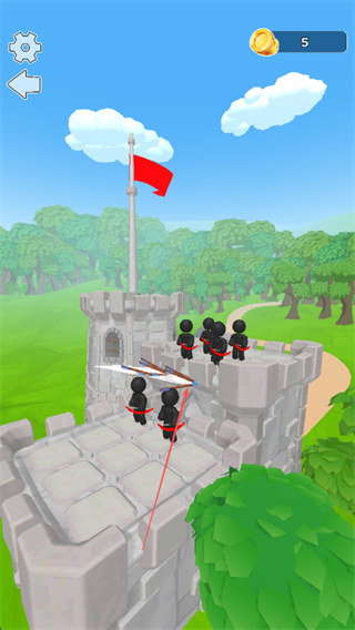 3、发射箭矢击中敌方城堡上的目标,推进战斗。
