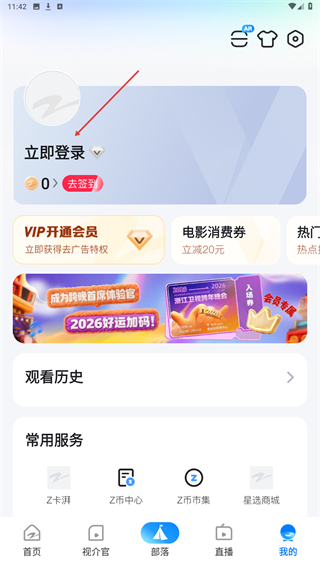 1、在Z视介首页的底部导航栏,点击我的选项,进入个人中心界面。