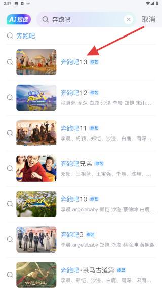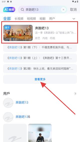 3、搜索结果页会按内容类型分类展示,点击封面即可进入到播放页面,也可点击更多查看往期节目。