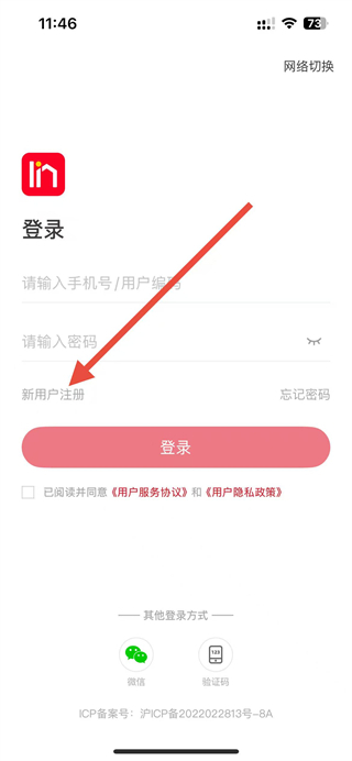 2、在登录页面中,找到新用户注册选项并点击,进入账号注册的流程界面。