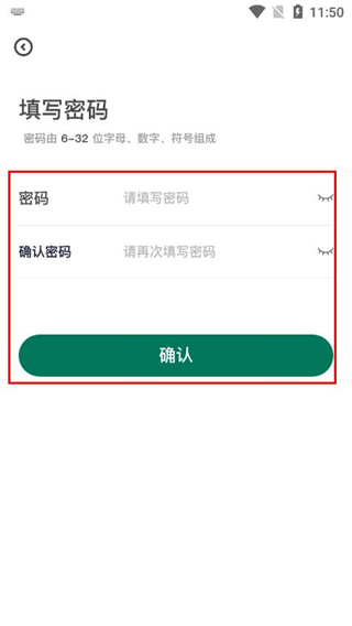 4、进入填写密码页面,设置密码,再次确认密码后点击确认。