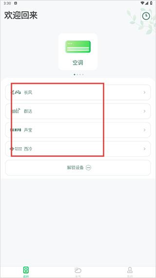 2、在选择设备的页面内,点击空调的设备。